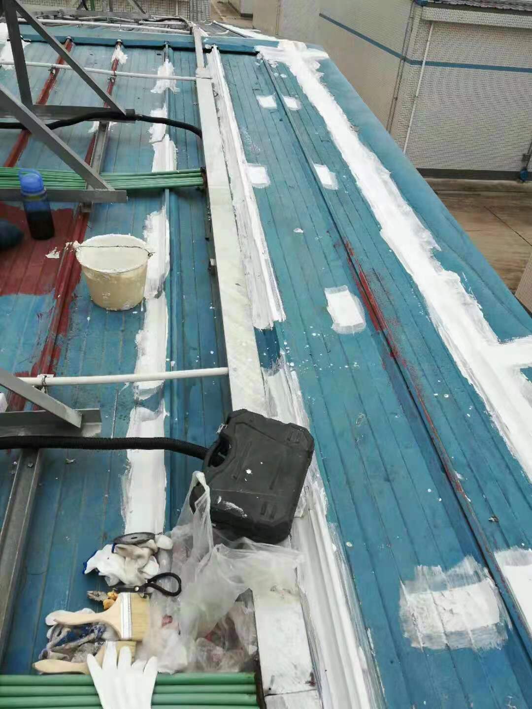 彩鋼瓦屋面防水湖南城工防水有限公司的工作員工在進行彩鋼瓦屋頂局部防水彩鋼瓦